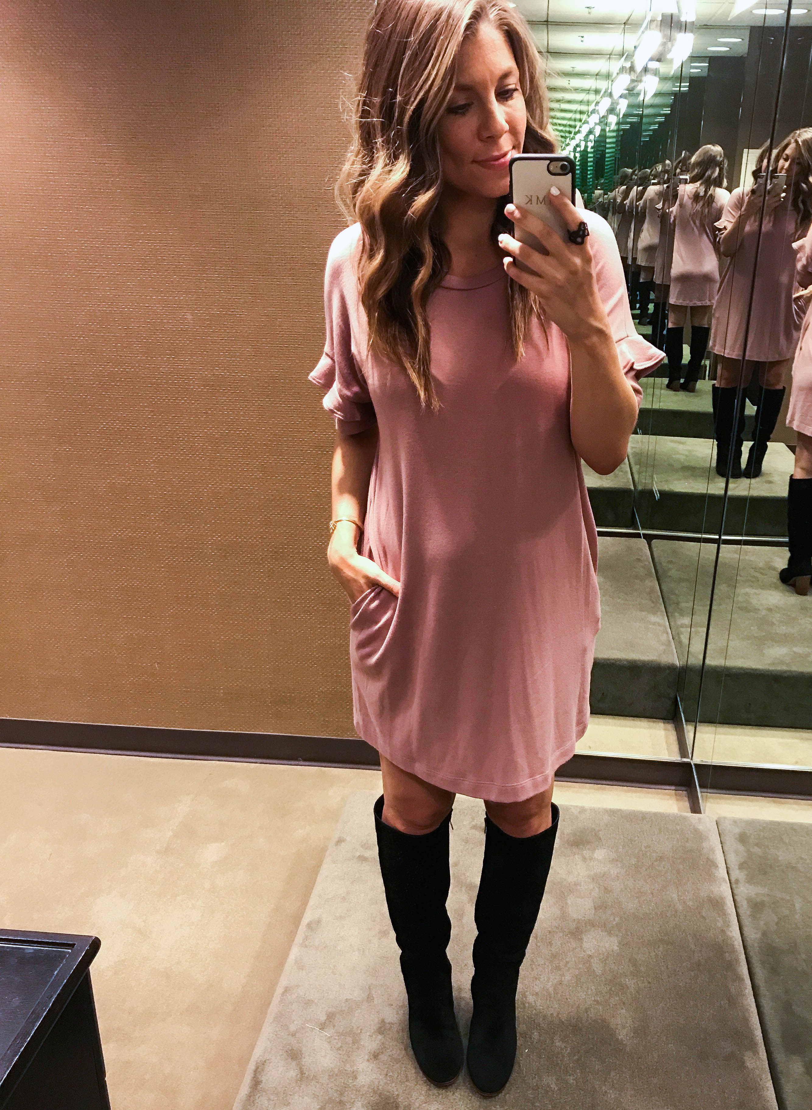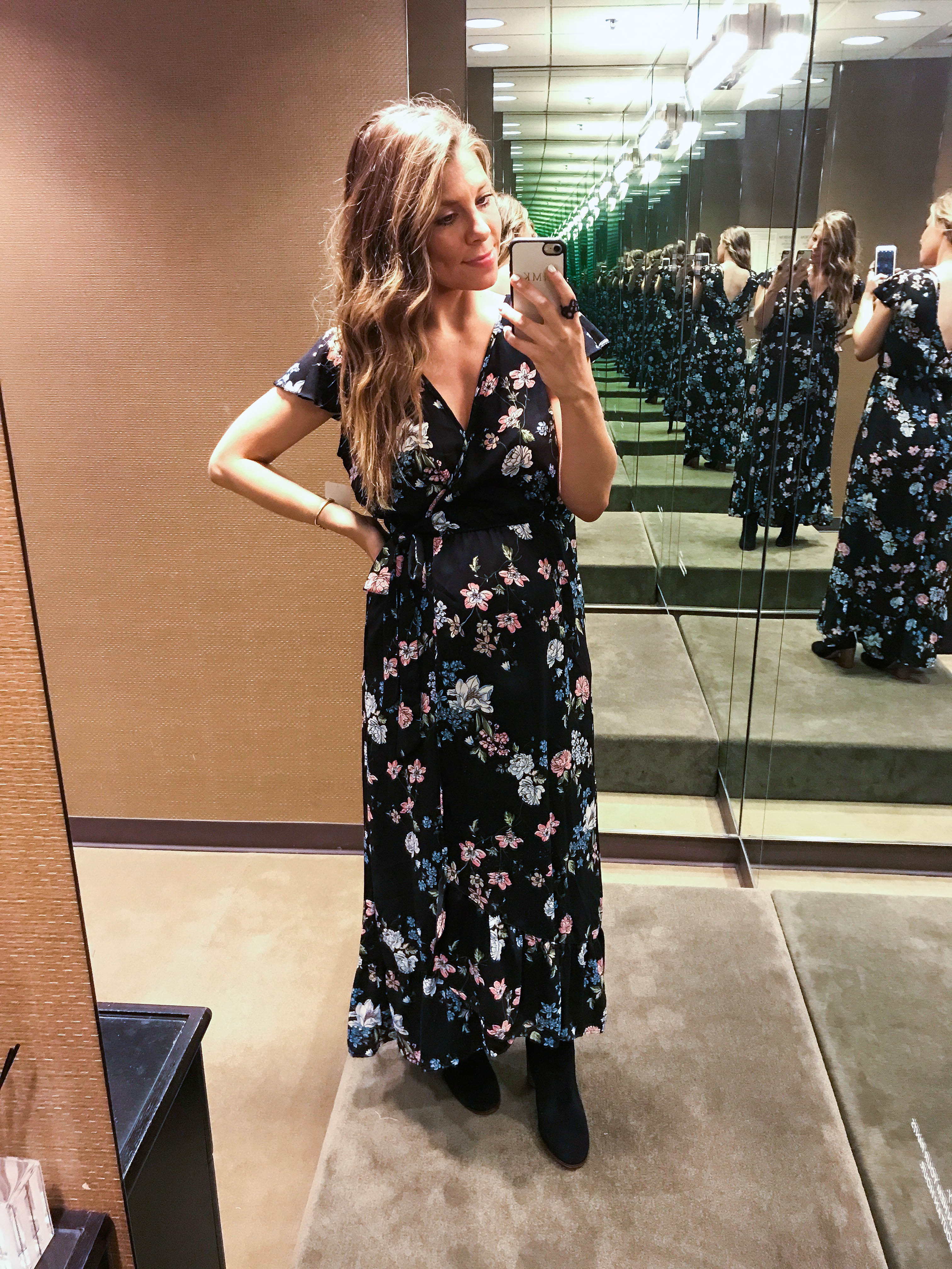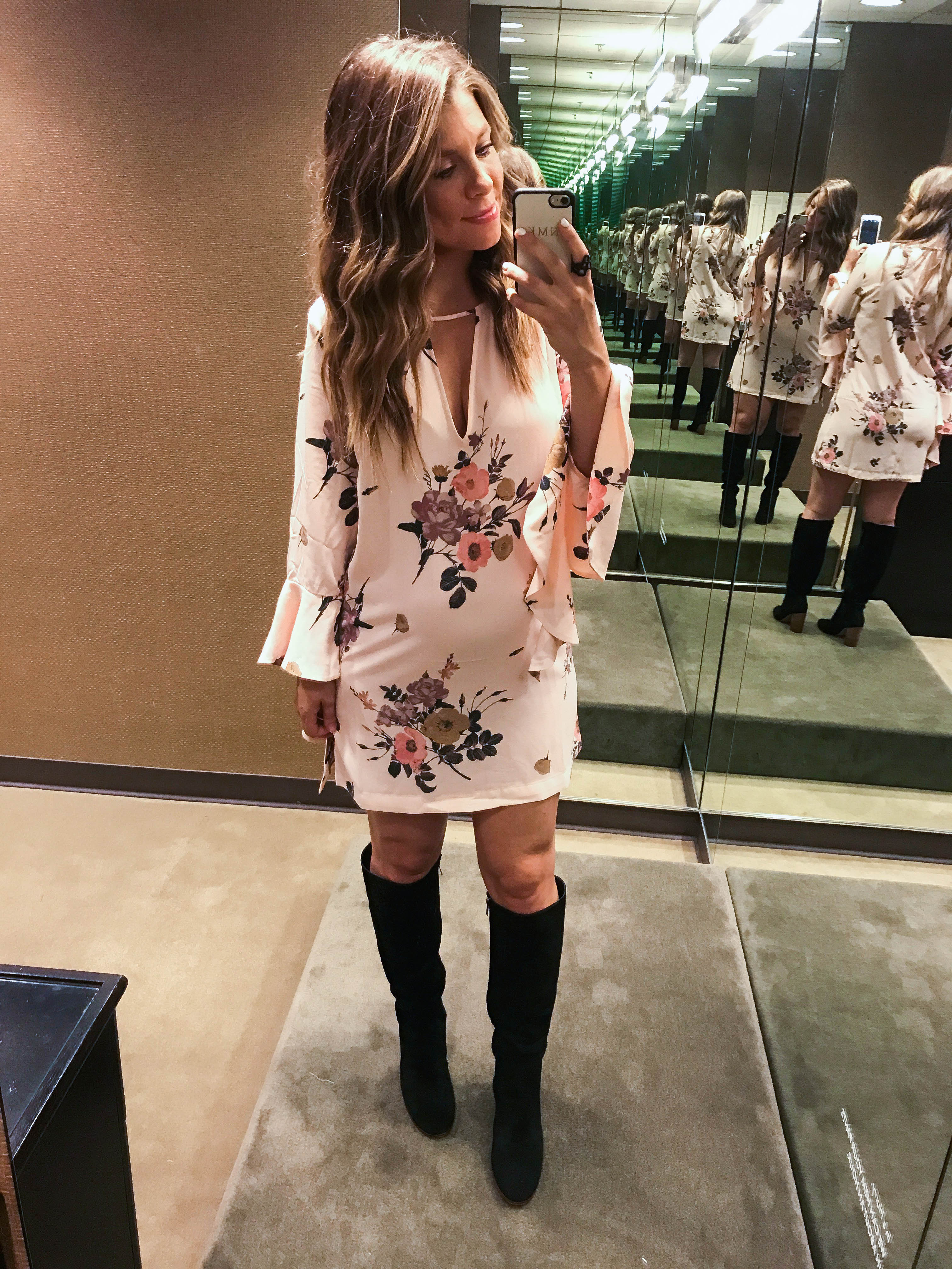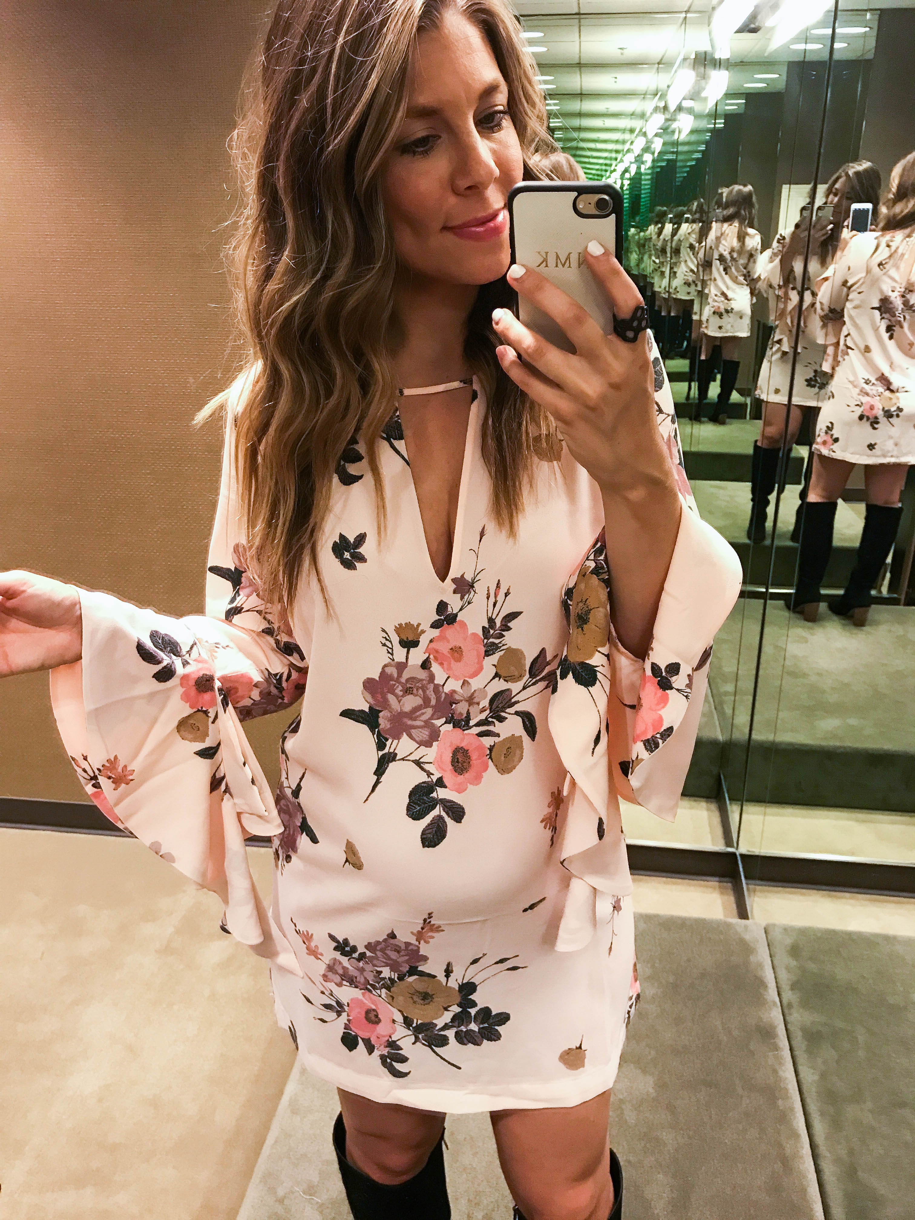 4. Sweetest floral print dress with the cutest sleeve detail! I would have loved to wear this to my baby shower but it’s still over a month away (not sure it will fit by then!). Shop the dress HERE. Boots HERE.