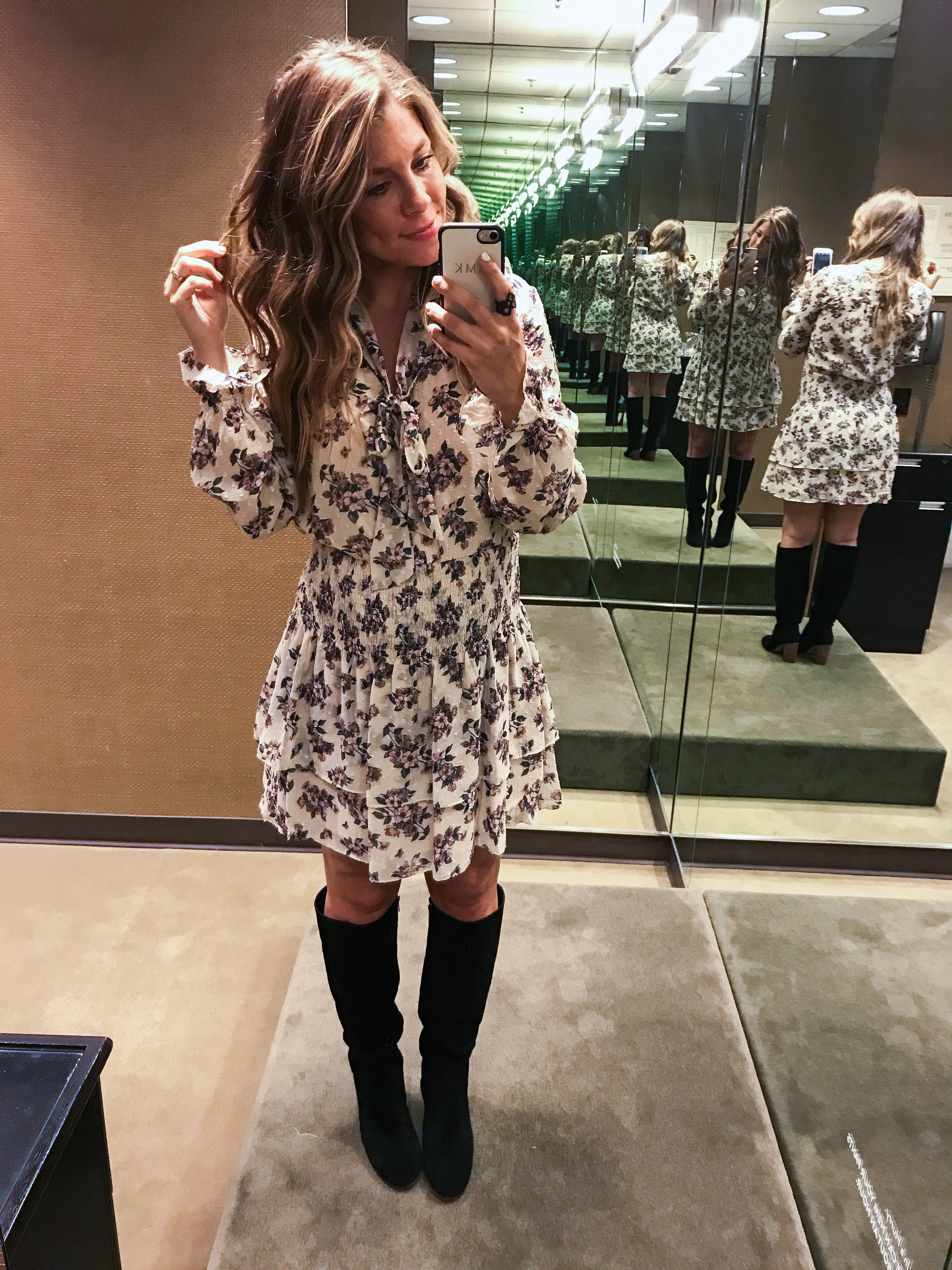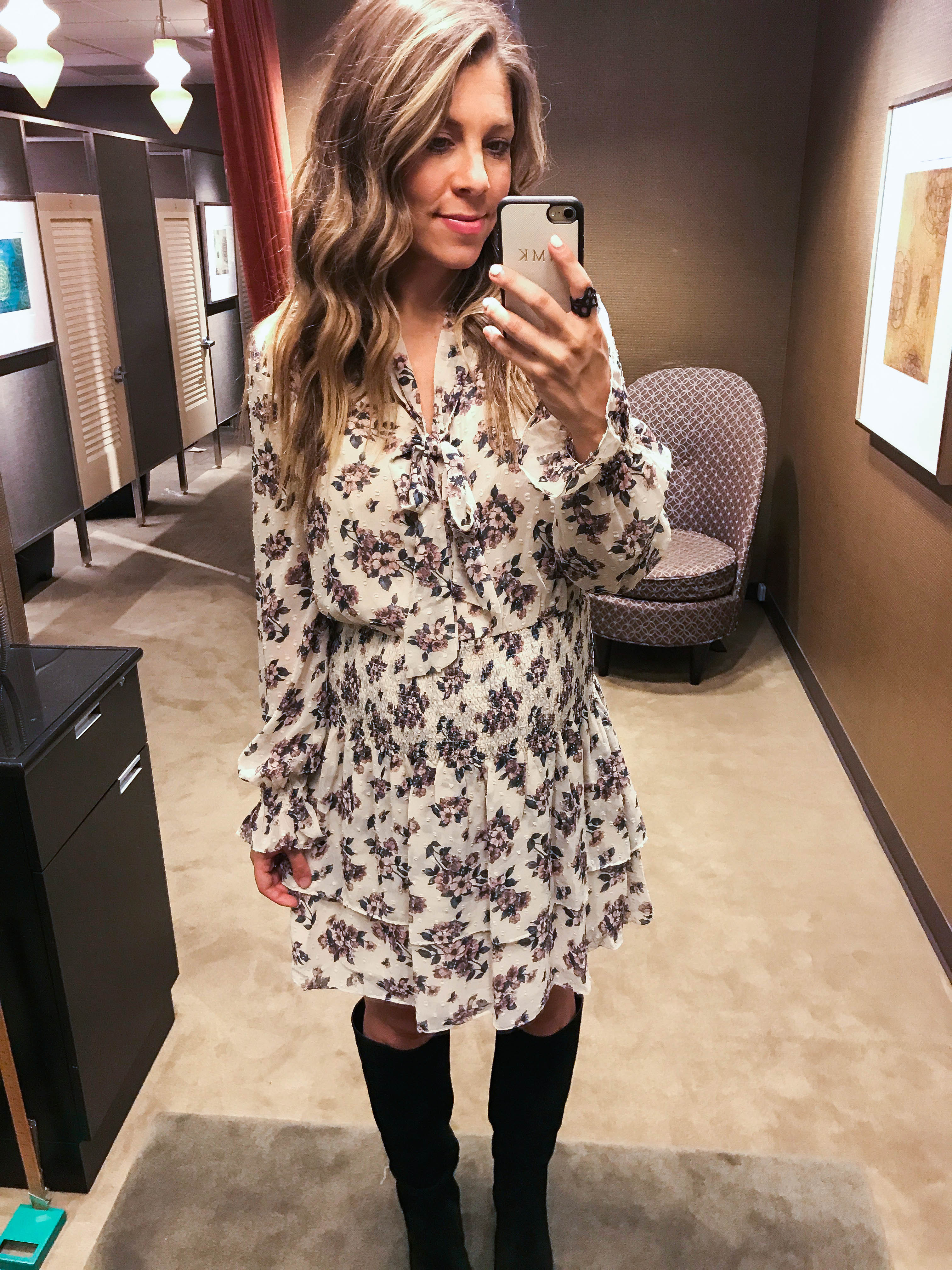 3. This tie neck dress is adorable and perfect for fall! It is meant to be worn with boots and booties! The smocked waistline definitely worked to my benefit! Shop it HERE